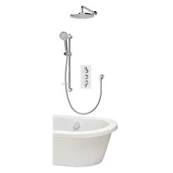 Go for timeless elegance with the classic combination of an Aquatique with a concealed valve and 5” drencher shower head. Beautifully constructed, the valve uses Aqualisa’s renowned bi-metallic thermostatic technology and is capable of reacting immediately to even very slight changes in water flow and temperature. As a result, showers are nothing less than exceptional. A maximum temperature limit and automatic shut off should hot or cold flows of water fail make for safer showering, whilst there is a choice of chrome or gold finishes.