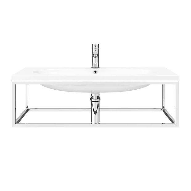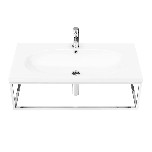 Arezzo 900mm Wall Hung Stone Resin Basin with Polished Chrome Towel Rail Frame