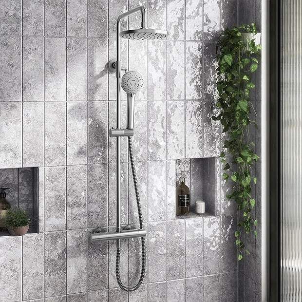 The Arezzo Brushed Gunmetal Grey complete thermostatic shower set offers both the flexibility of a lightweight multi-function spray pattern shower handset and the extravagance of a fixed round overhead drencher. This premium Gunmetal Grey thermostatic shower comes complete with the newest ceramic disc technology and is easy to install. Featuring Gunmetal Grey shower fixtures in a contemporary round design, it will make a sophisticated centrepiece in your wet room or bathroom. Both shower heads have nozzles than can be rubbed clean to make limescale removal quick and easy.