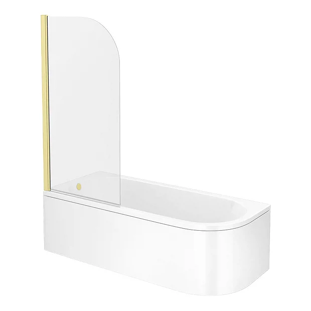 Arezzo Shower Bath (1700mm J Shaped with Brushed Brass Screen + Curved Acrylic Panel)