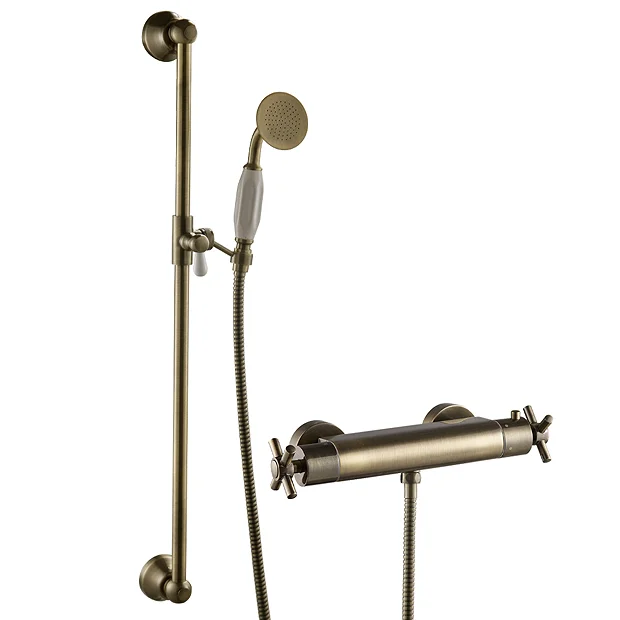 Chatsworth Antique Brass Effect Traditional Crosshead Shower Bar Valve + Slider Rail Kit