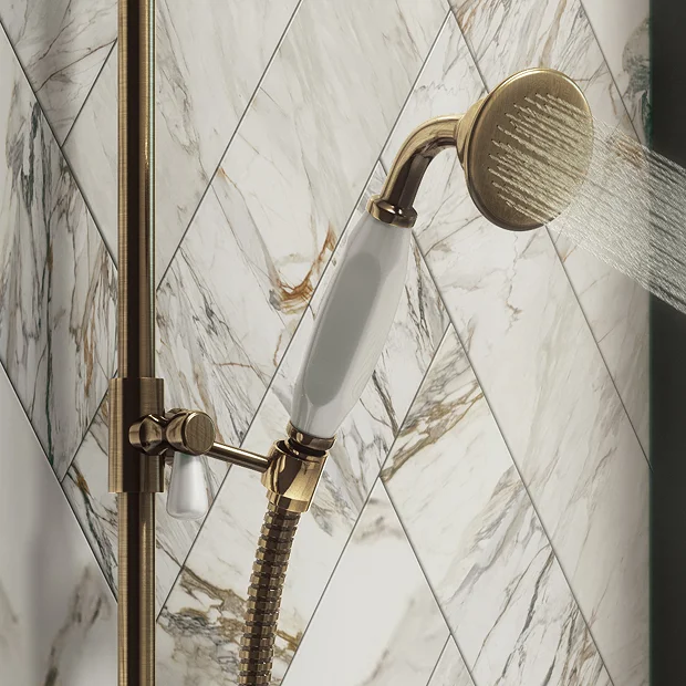 The Antique Brass Effect Chatsworth Traditional Crosshead Shower Bar Valve is a safety conscious option for your bathroom. Featuring the latest anti scald technology, the thermostatic bar shower valve is preset to an optimal 38°C, which you can easily adjust to your preference via the safety button on the handle. As well as temperature control, the crosshead tap head offers pressure control so you can set the flow as desired. The matching wall mounted slider rail kit allows for easy adjustment to the perfect height too. It’s distinctive vintage style means it pairs seamlessly with other fixtures in the series, including taps and bathroom accessories.Â