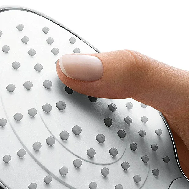 The Croma Select S Vario Thermostatic Shower System offers elegant design, amazing functionality and reliable quality. This complete shower system adds a touch of sophistication to any bathroom. It features 3 spray patterns: Rain – perfect for rinsing shampoo out of your hair, IntenseRain – perfect for setting yourself up for the day washing morning tiredness down the drain, TurboRain – a revitalising, powerful spray providing a refreshing shower experience. The QuickClean rub clean nubs loosens any limescale deposits making sure your hand shower looks beautiful, and stays working for longer.