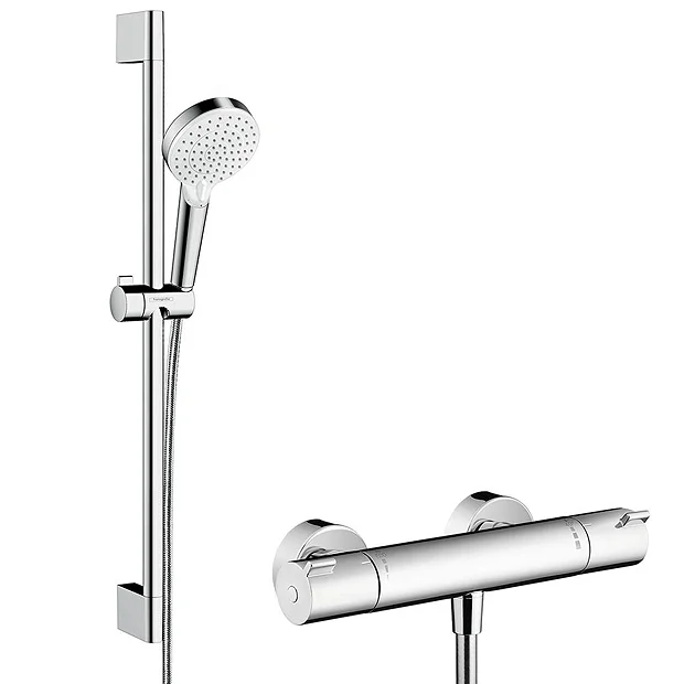 hansgrohe Crometta Vario Thermostatic Shower System with 65cm Shower Slider Rail Kit – 27812400