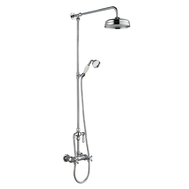 Complete your traditional bathroom with this timeless complete shower kit from Hudson Reed. Comprising of a thermostatic bar valve and rigid riser kit with a luxury 8″ round rainfall showerhead and single spray handset. The built-in diverter allows you to switch between the fixed head or handset. Manufactured from durable brass with a polished chrome finish for an added touch of style.