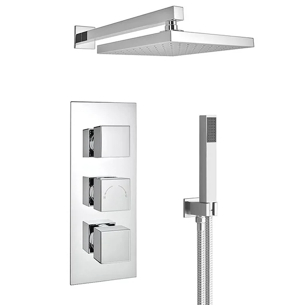 Milan Triple Thermostatic Concealed Shower Valve with Square Shower Head and Handset