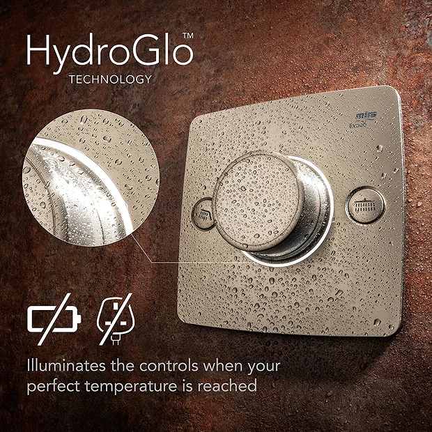- Innovative Mira HydroGlo technology illuminates the controls when your perfect temperature is reached
