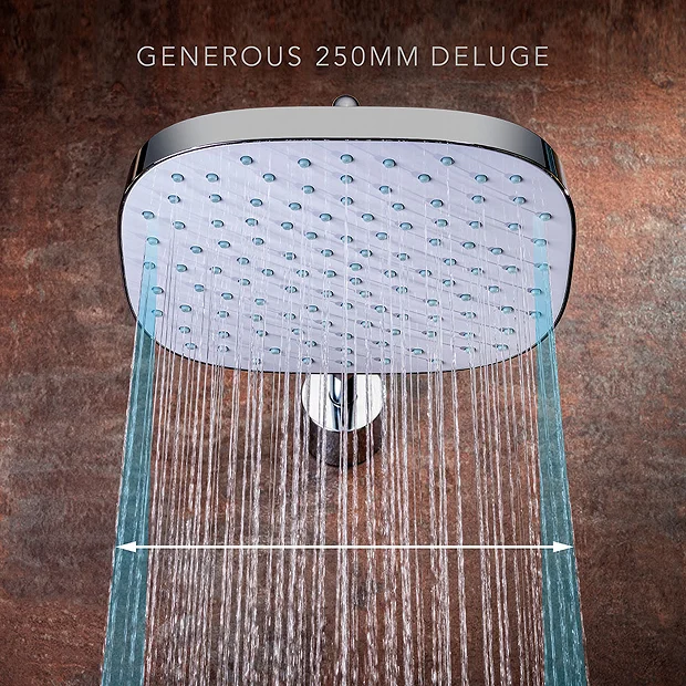 - Mira Evoco’s 250mm deluge showerhead is carefully engineered to maximise flow and coverage. For a more luxurious showering experience