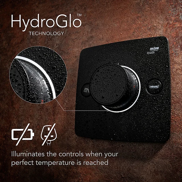 - Innovative Mira HydroGlo technology illuminates the controls when your perfect temperature is reached