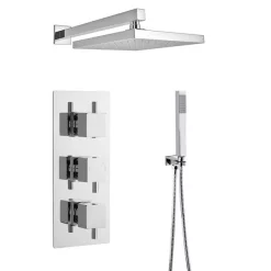 Ultra Series L Triple Thermostatic Valve With Square Shower Head + Handset