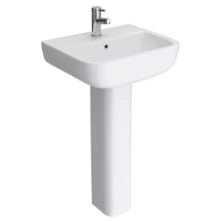 The Tonique 1 tap hole basin with full pedestal from RAK ceramics, transform your bathroom with one of our contemporary basins from RAK ceramics. Supplied with a full pedestal which will conceal unsightly pipework. Basin has a overflow and tap platform, the clean curvacious design of the Tonique basin and full pedestal will compliment any cloakroom or bathroom.