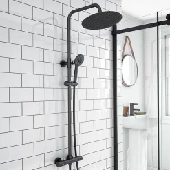 Arezzo Matt Black Square Thermostatic Shower Pack Incl. Wall Mounted Head + Slider Rail Kit