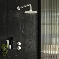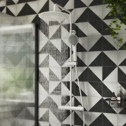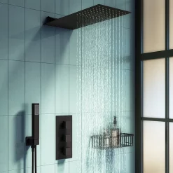 Arezzo Matt Black Square Triple Thermostatic Shower Pack W. Flat Fixed Head + Handset