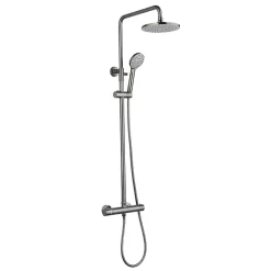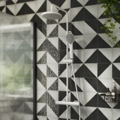 Arezzo Round Matt Black Shower Bath + Exposed Shower Pack (1700 B Shaped With Screen + Panel)