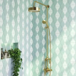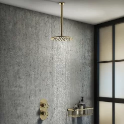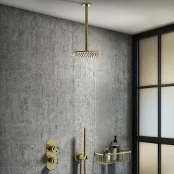 Arezzo Brushed Brass Industrial Style Shower System With Concealed Valve + Ceiling Mounted Head
