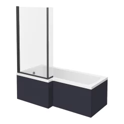 Arezzo Shower Bath – 1700mm L Shaped With Matt Black Screen + Matt Blue Panel