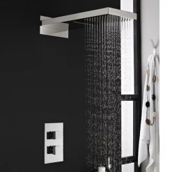 Milan Bathroom Milan Square Push-Button Shower Valve Pack With Handset + Rainfall Shower Head