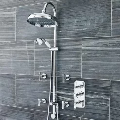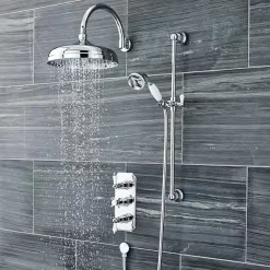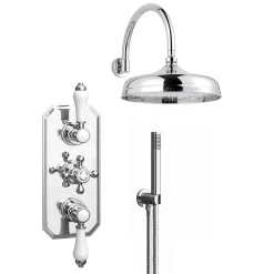 Trafalgar Triple Concealed Shower Valve Inc. Outlet Elbow, Handset & Curved Arm With Fixed Head