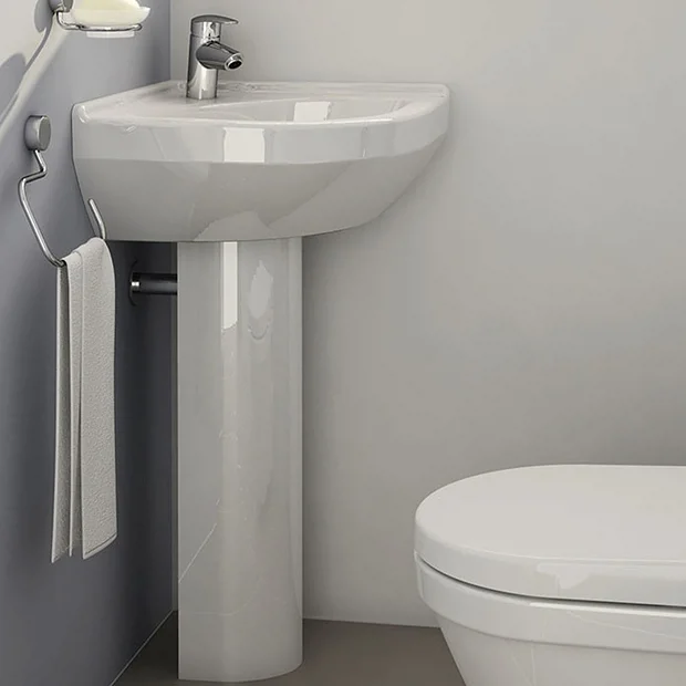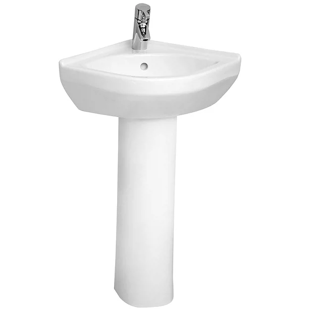 Make the most of limited space with this S50 Round Corner Basin and Pedestal with single tap hole. Designed to fit flush into corner spaces, the S50 range is manufactured to the highest standards using the latest technologies.